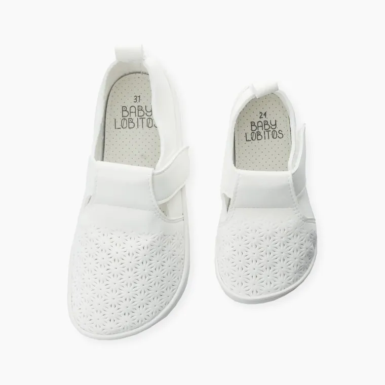A Baby Lobitos Paulitos Troquelados cipő tökéletes választás a szabad mozgás és az egészséges fejlődés támogatására. Ez a modell 100%-ban vegán és fenntartható anyagokból készült, így környezettudatos családok számára is ideális. A könnyű és hajlékony kialakításnak köszönhetően a gyerekek természetesen mozoghatnak, miközben a cipő maximális kényelmet biztosít.